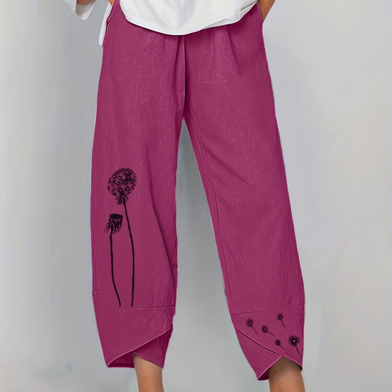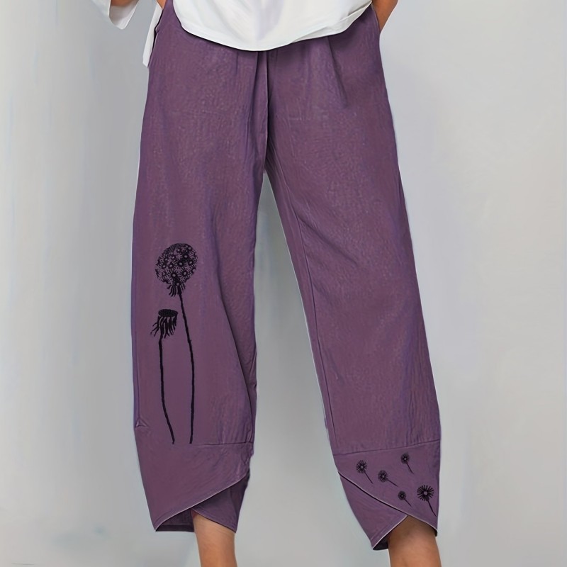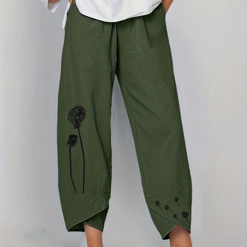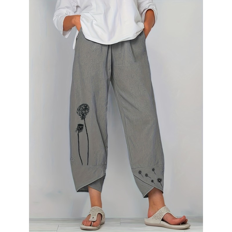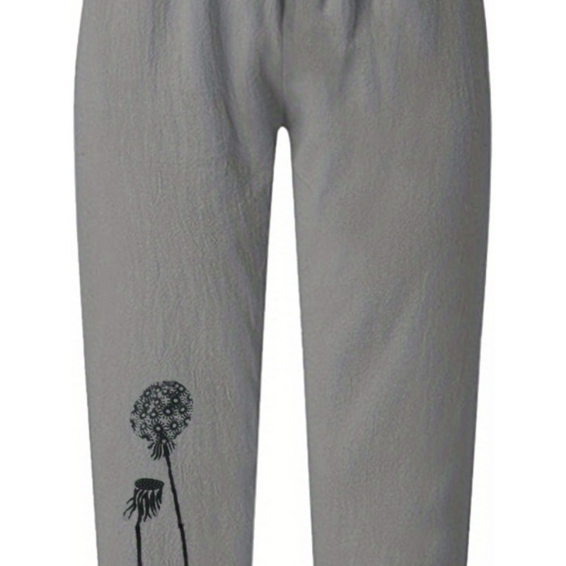 Boho Dandelion Print Harem Pants, Casual High Waist Baggy Summer Cropped Pants, Women's Clothing