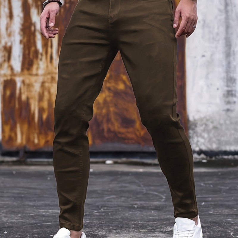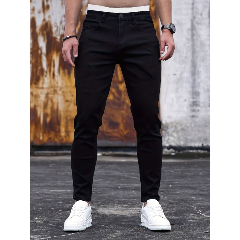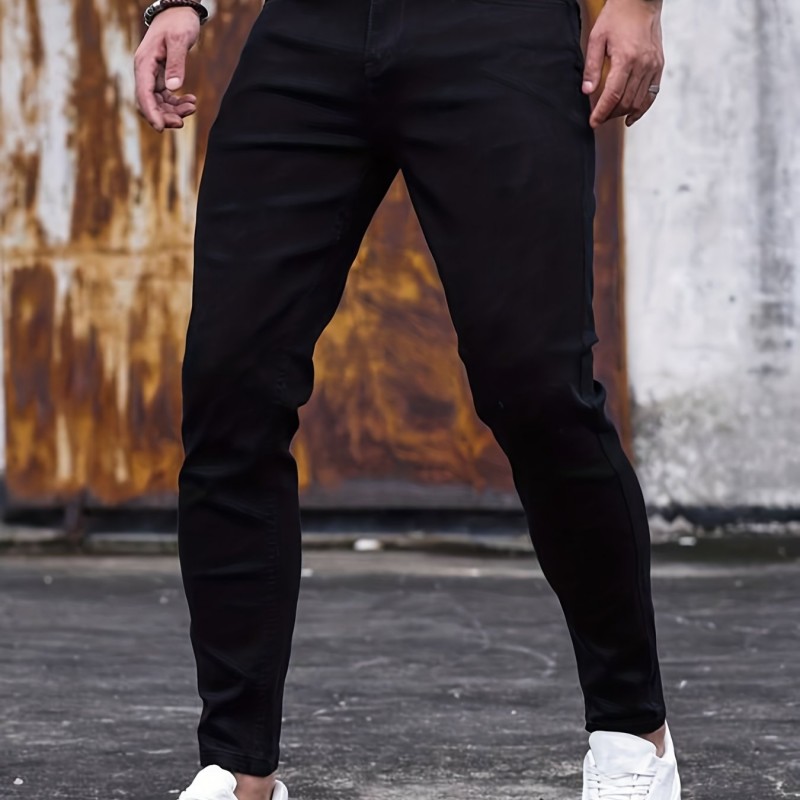 Chic Slim Fit Jeans, Men's Casual Street Style Medium Stretch Denim Pants