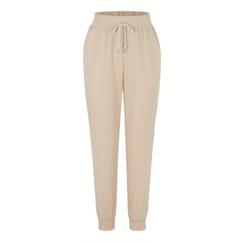 drawstring solid pants casual long length pants with pockets womens clothing details 0
