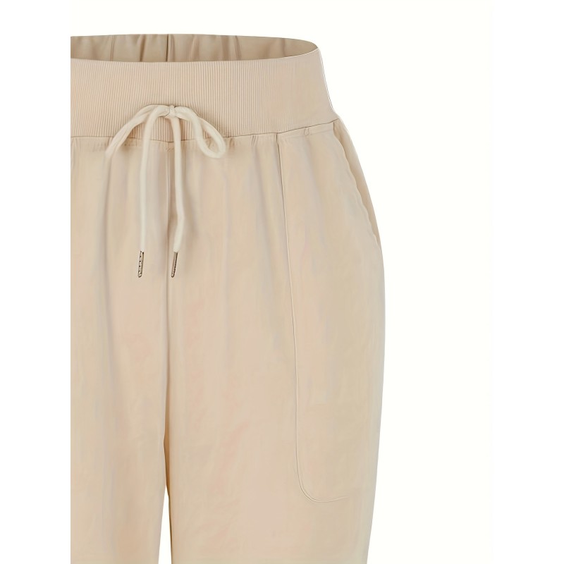 drawstring solid pants casual long length pants with pockets womens clothing details 1