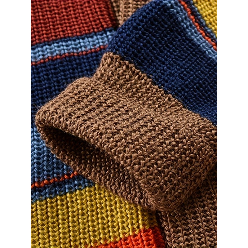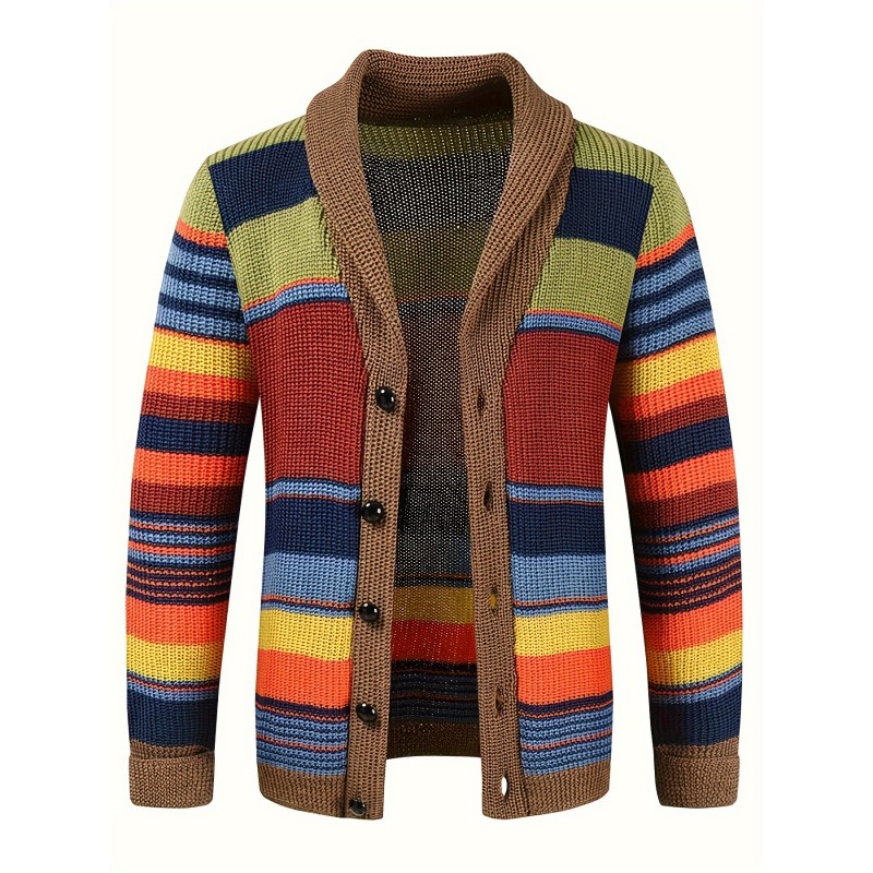 Elegant High Stretch Ethnic Retro Cardigan, Men's Casual Vintage Style V Neck Button Up Cardigan Sweater Coat For Fall Winter