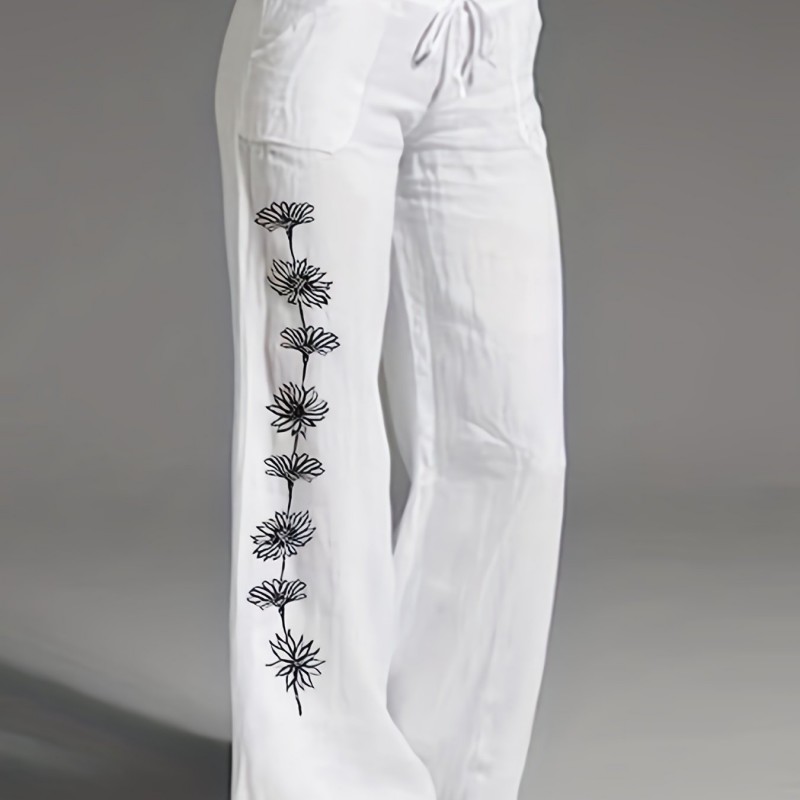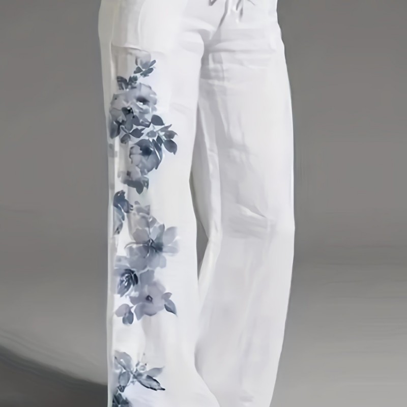 Floral Print Wide Leg Pants, Casual Loose Pants For Spring & Fall, Women's Clothing