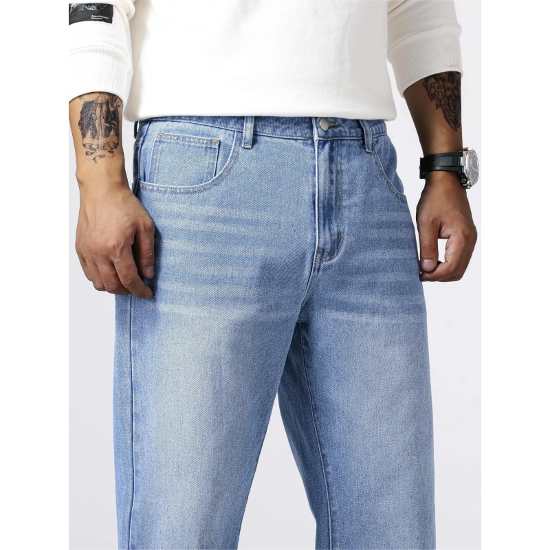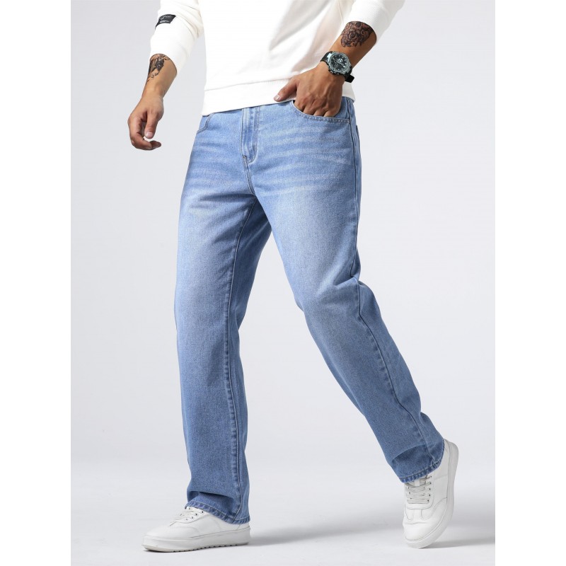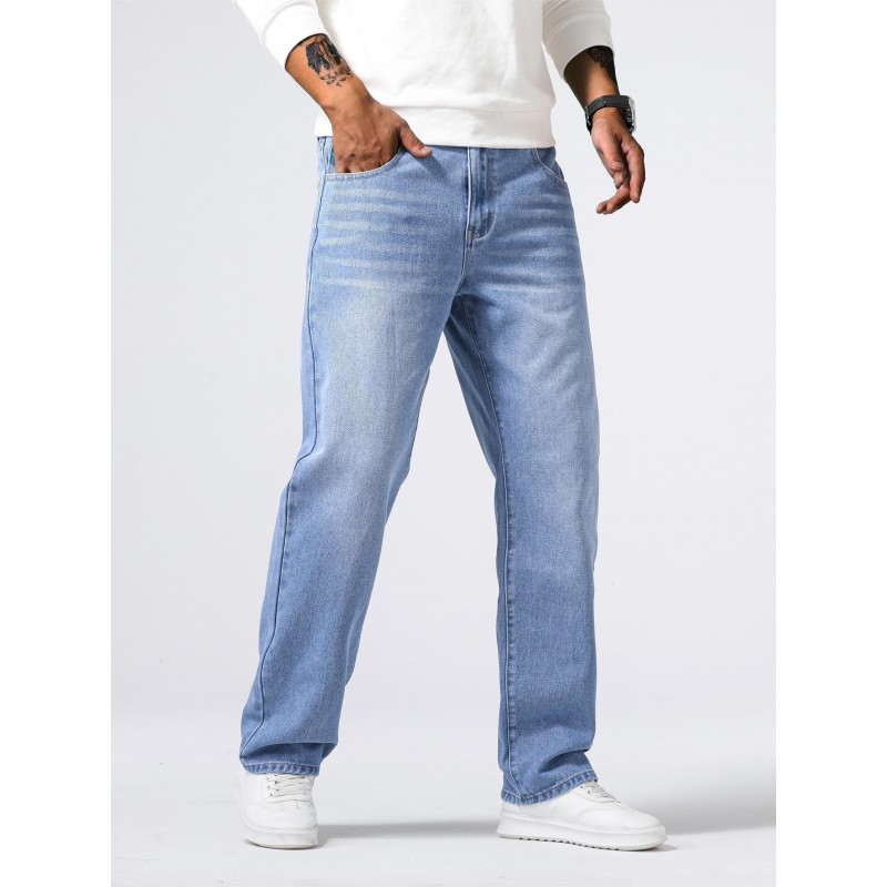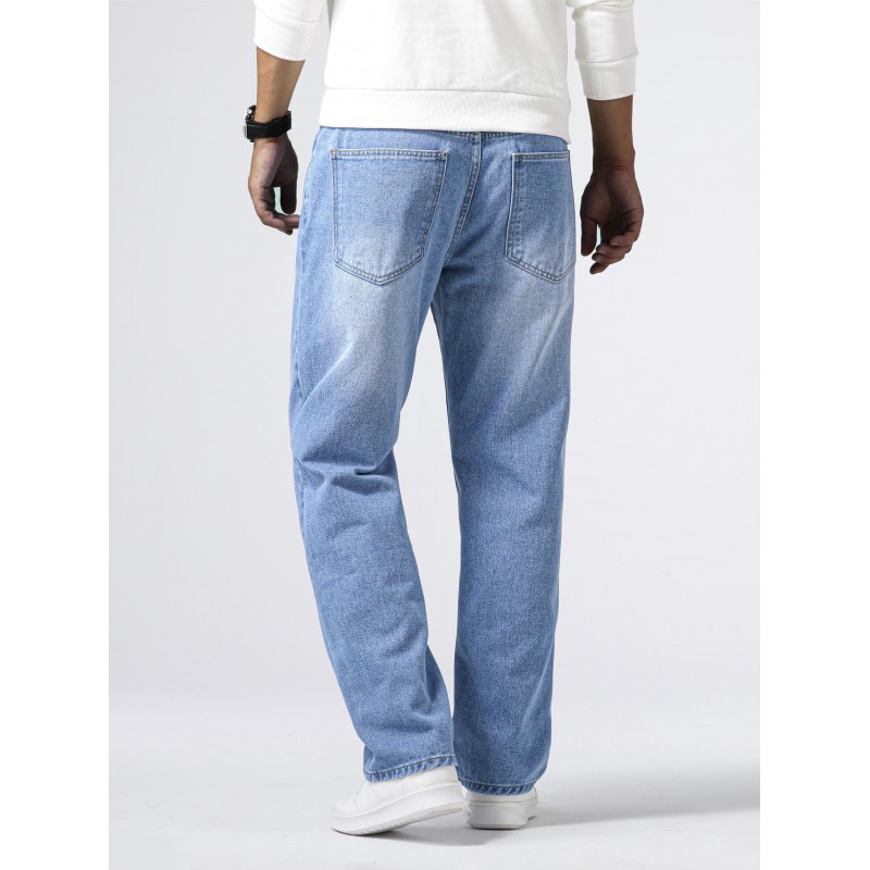 loose fit straight leg jeans mens casual street style distressed denim pants for all seasons details 0