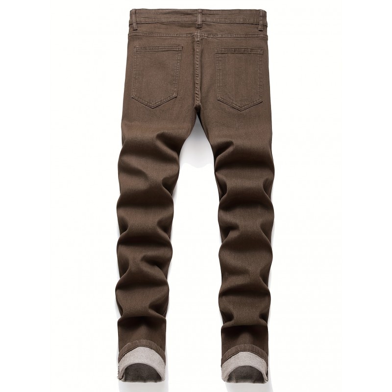 Men's Casual Slim Fit Jeans, Street Style All Match Medium Stretch Jeans