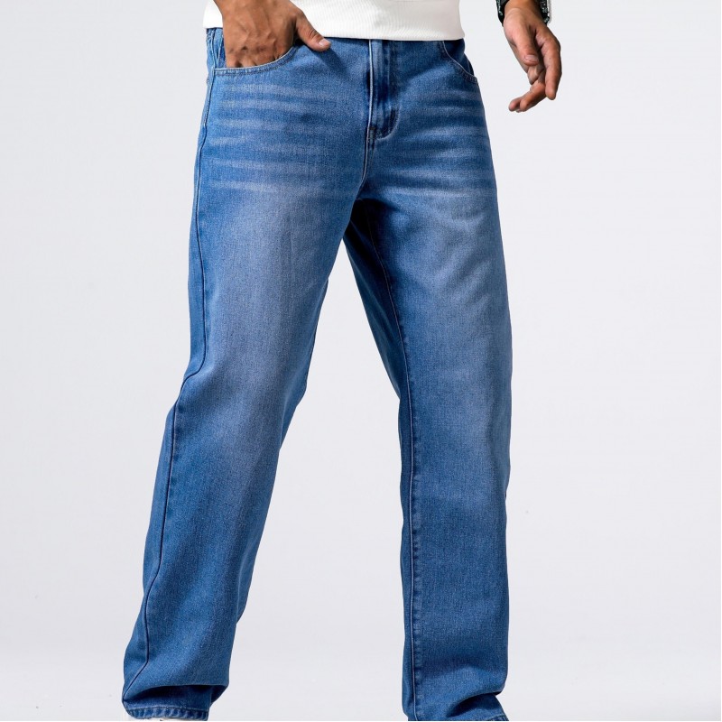 Men's Classic Design Loose Fit Distressed Jeans, Casual Street Style Denim Pants For The Four Seasons
