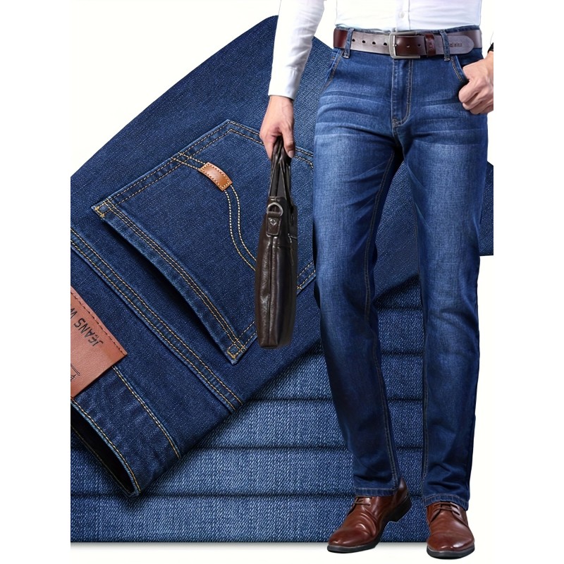 Men's Semi-formal Jeans, Chic Classic Design Stretch Jeans For Business