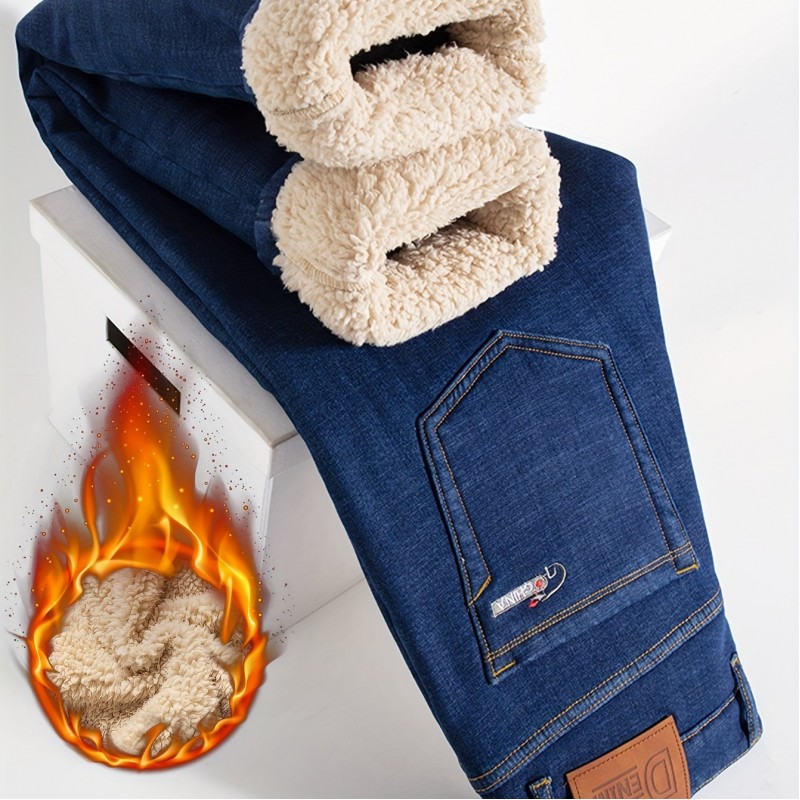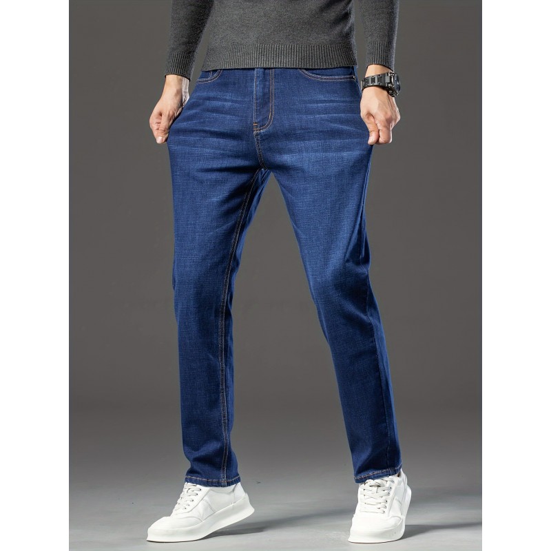 Warning: unlink(/www/wwwroot/www.helloclothmall.com/storage/cache/cache.catalog.language.1764995525): No such file or directory in /www/wwwroot/www.helloclothmall.com/system/library/cache/file.php on line 68 Men's Stylish Comfy Solid Fleece Denim Trousers With Pockets, Casual Breathable Slim-fit Jeans For City Walk Street Hanging Outdoor Activities