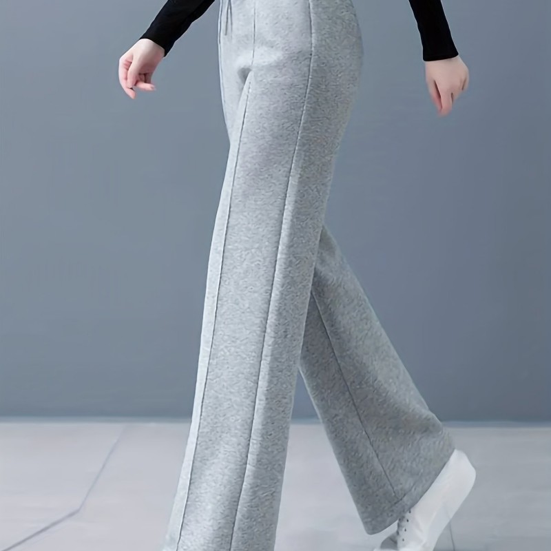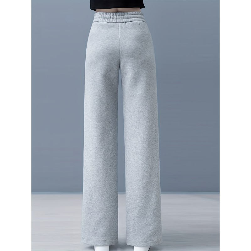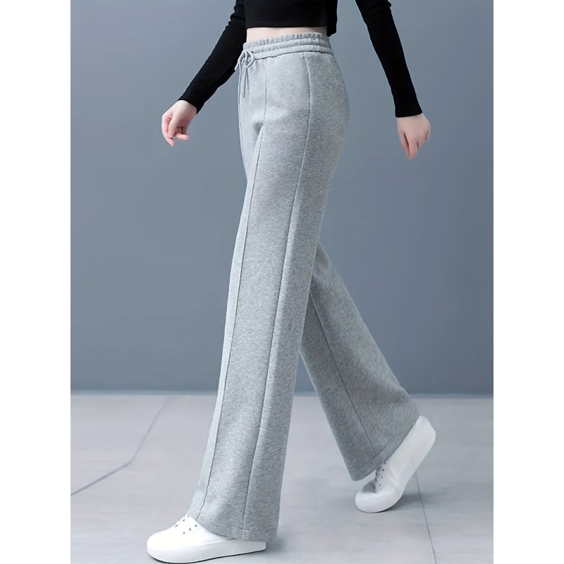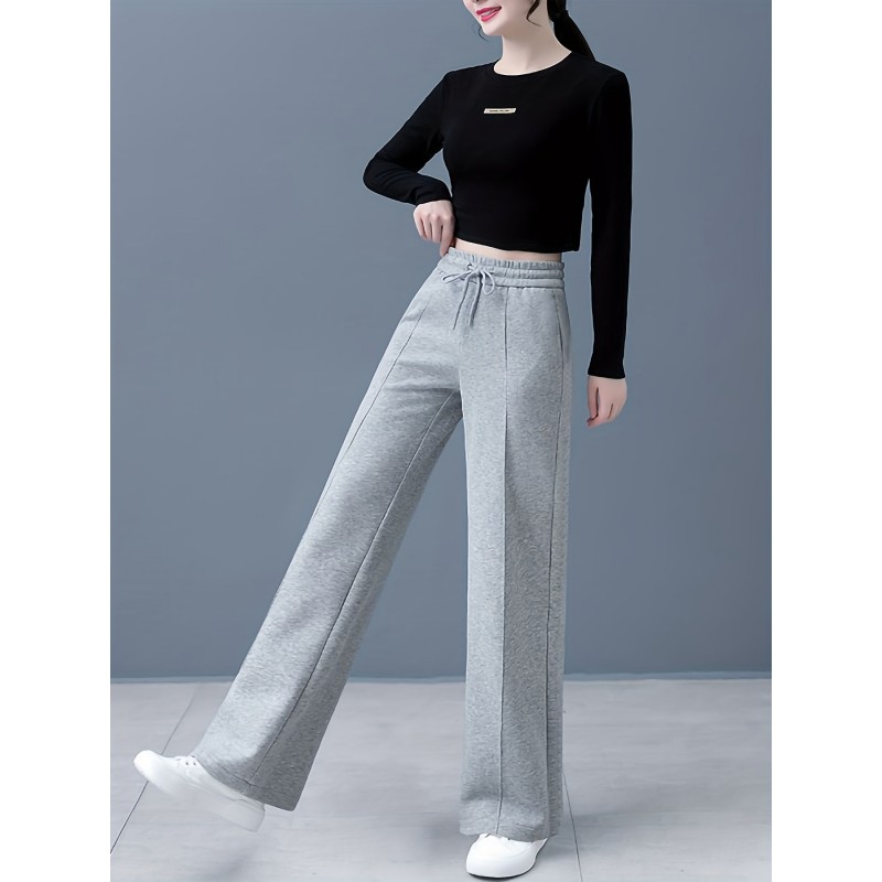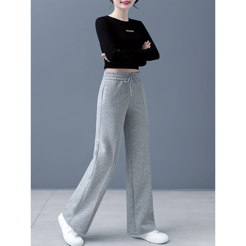 Solid Drawstring Straight Leg Sweatpants, Casual High Waist Loose Pants, Women's Clothing