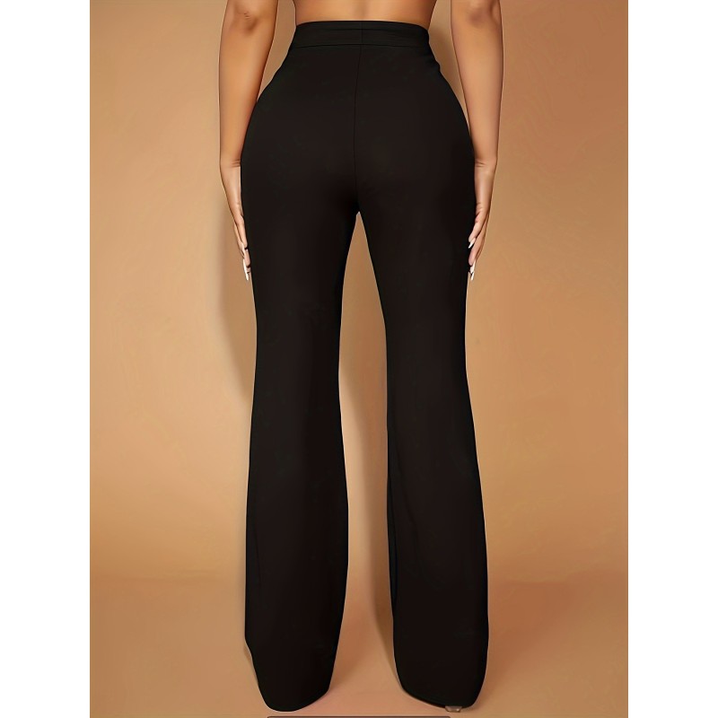 solid high waist slim pants casual flare leg pants for spring fall womens clothing details 0