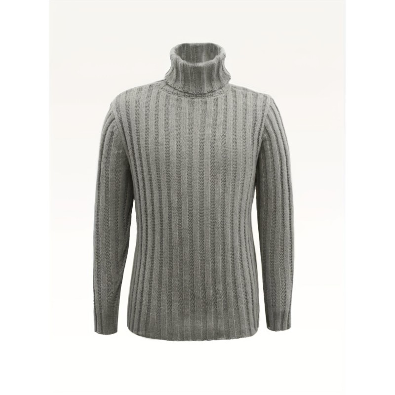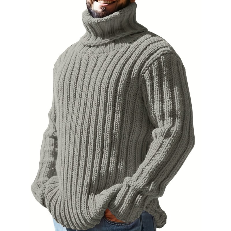 Turtle Neck Knitted Cable Sweater, Men's Casual Warm Solid Color Middle Stretch Pullover Sweater For Fall Winter