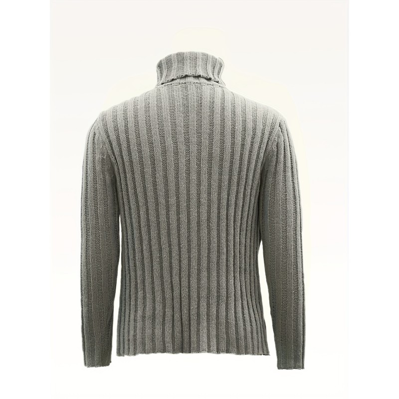turtle neck knitted cable sweater mens casual warm solid color middle stretch pullover sweater for fall winter details 2