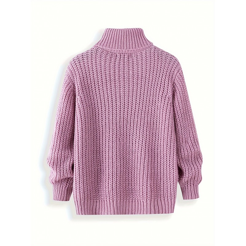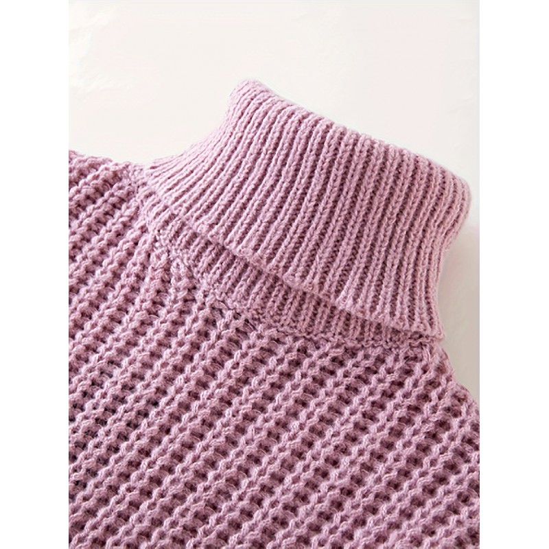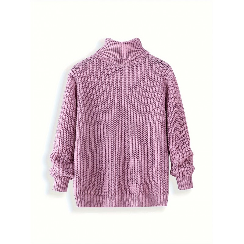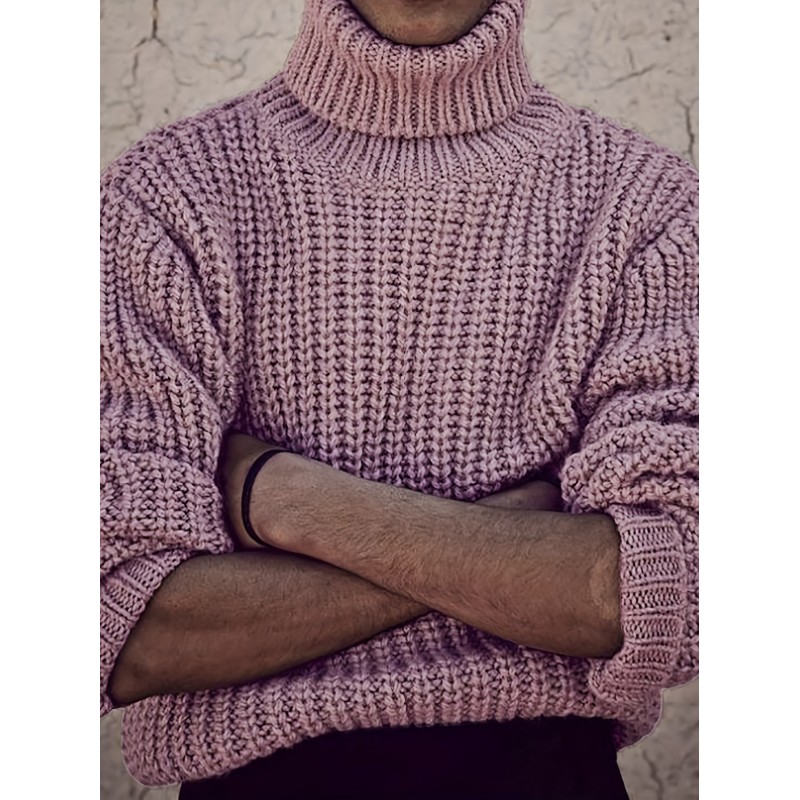 Turtle Neck Knitted Cable Sweater, Men's Casual Warm Solid Slightly Stretch Pullover Sweater For Fall Winter