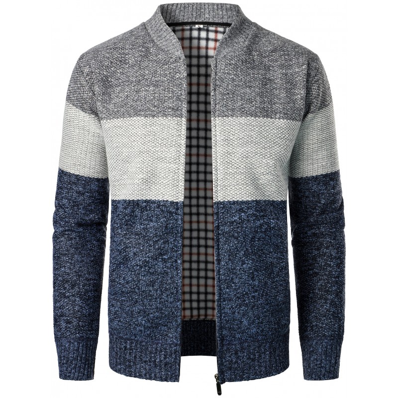 warm stand collar fleece jacket mens casual comfortable color block mid stretch zip up knitted cardigan for spring fall details 0
