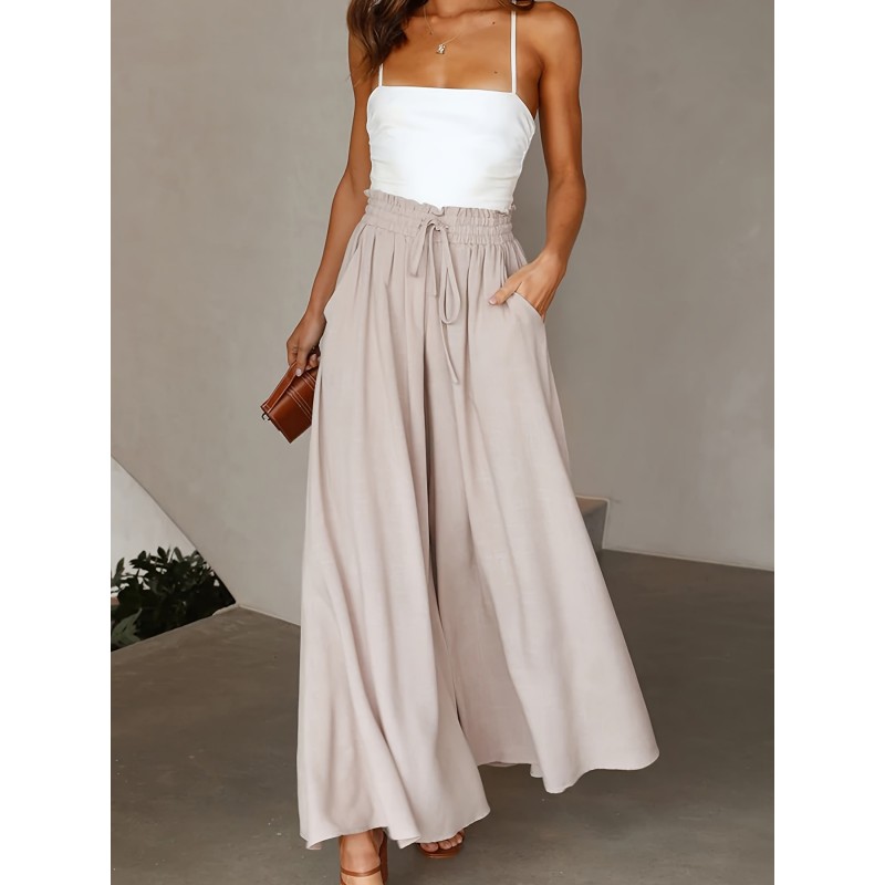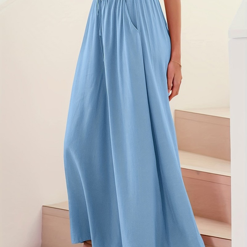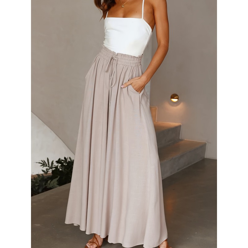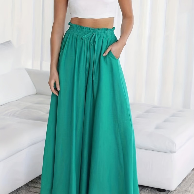 Women's Wide Leg Palazzo Pants, Flowy Ruffle Solid Pants, Women's Clothing