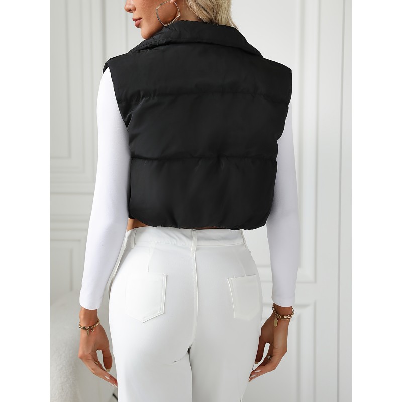 zip up cropped vest coat casual solid sleeveless stand collar outerwear womens clothing details 1