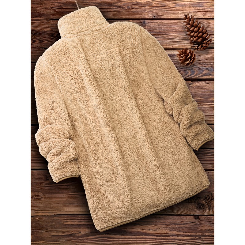 zip up solid teddy coat casual long sleeve winter outerwear womens clothing details 0